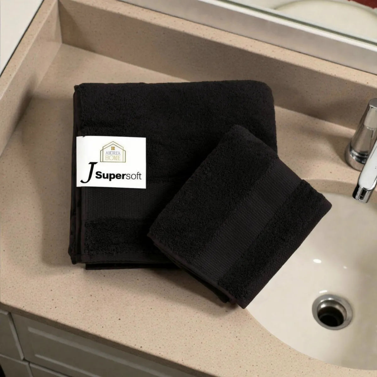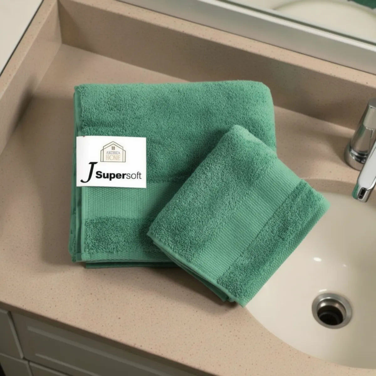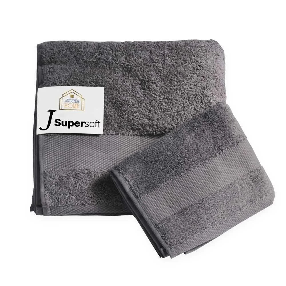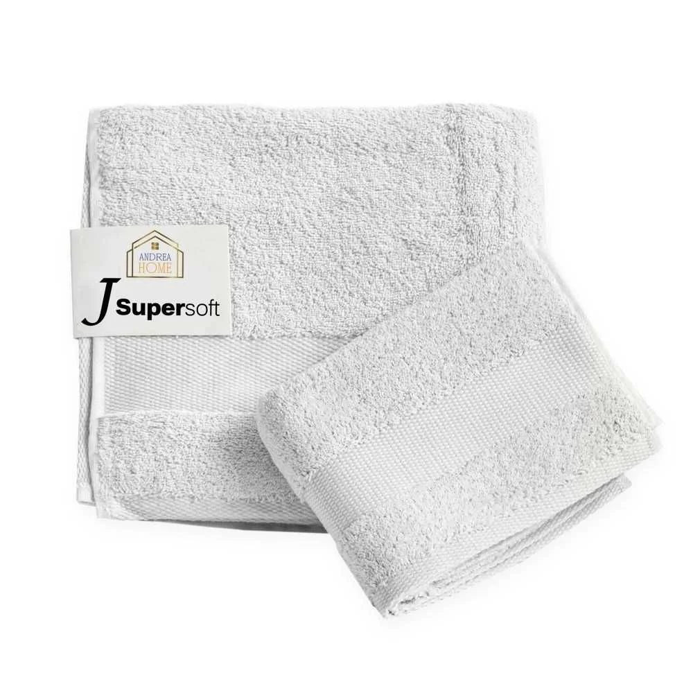Coppia di asciugamani viso + ospite in 100% cotone pettinato Andrea Home JsuperSoft,